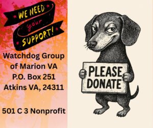 If you would like to make a donation to the group, you may mail it to: Watchdog Group of Marion Virginia, P.O. Box 251, Atkins VA 24311.
