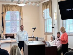 Chief Rusty Hamm delivered his final Fire/EMS report before departing for his new state position. February saw 211 calls, and the department’s long‑planned new ambulance arrived and was on display across the street from Town Hall. A new fire engine—costing just over $1 million—is nearing final inspection. “It has been an honor and privilege to serve this town,” Hamm said.